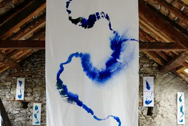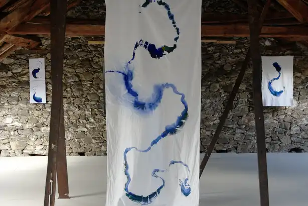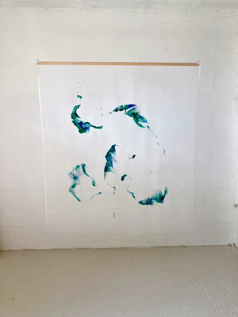 In September 2025, the solo exhibition featured field recordings, fine art prints of black-and-white photographs, and artworks on cotton and silk panels, as well as paper.